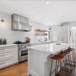 Upon entering the home, one is pleasantly greeted by warmth and elegance. An inspiring chef’s kitchen displays a beautiful, tasteful design with a spacious island for family gatherings.