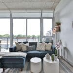 Brilliantly designed one-bedroom corner suite at The Carlaw. Rarely available layout with wall-to-wall floor-to-ceiling windows, a spectacular balcony with gas hookup and some of the best-unobstructed views in the neighbourhood. Meticulously maintained with ultra-modern finishes, 9′ exposed concrete ceilings, stone countertops, custom-built island, integrated appliances, and a spa-inspired bathroom with a deep soaker tub. The bedroom is perfectly tucked away and features large windows, a wall-to-wall closet and ensuite laundry. This is condo living without any compromises!