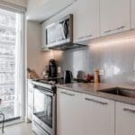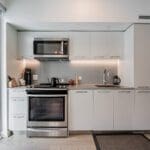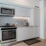 The modern kitchen is complete with integrated appliances, quartz countertops, and high-end appliances. Expansive floor-to-ceiling windows throughout with custom roller blinds, ample closet space and a super functional layout. Here is your chance to own an incredible downtown condo in one of the city’s most cherished neighbourhoods. Best of all, parking and locker are included!