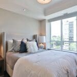 A sophisticated primary retreat with a large walk-in, double closet and ensuite bath. This prestigious residence offers 5-star amenities, including valet parking, state of the art gym, an indoor pool and a hot tub. This suite also includes a premium parking space next to the elevator and one storage locker.