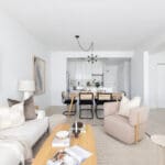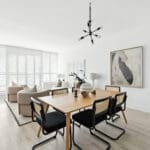 The updated kitchen is equipped with white cabinetry, stone countertops and backsplash, stainless steel appliances, and a convenient pass-through to the living area—ideal for entertaining. Additional highlights include ensuite laundry, ample storage space, and underground parking.