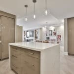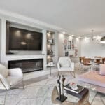 The open-concept living and dining area features custom built-ins, a contemporary fireplace, and seamless flow into a sleek modern kitchen, complete with integrated Miele appliances and a convenient breakfast bar. The spacious primary bedroom is a true retreat, showcasing a custom walk-in closet and spa-like ensuite. A second bedroom provides flexibility for guests or a home office, while ensuite laundry, one parking space, and a storage locker add everyday convenience.