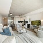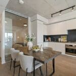 Welcome to Superkul’s newest award-winning development at The Junction House- a striking blend of modern design and thoughtful urban living in one of Toronto’s most vibrant neighbourhoods. This beautifully designed one-bedroom suite features soaring 9-foot ceilings and floor-to-ceiling windows, creating an airy, light-filled space with a south-facing exposure that maximizes natural sunlight throughout the day. Warm light wood flooring flows seamlessly throughout the unit, adding a natural elegance to the contemporary interior. The Scavolini kitchen is a standout, featuring sleek integrated appliances, a gas range, and refined finishes that balance functionality with sophisticated style. The generously sized living room offers unobstructed views, providing an inviting space to relax or host guests. The bright bedroom includes a large closet and continues the home’s theme of comfort and natural light. The well-appointed four-piece bathroom is finished with clean, modern detailing for a spa-like feel. Residents of The Junction House enjoy exceptional building amenities, including a professional co-working space, a high-end fitness and wellness gym, and a stunning rooftop terrace complete with BBQs, fire pits, and a dedicated dog area-ideal for both relaxation and social gatherings. A perfect balance of style, comfort, and convenience in a landmark development.