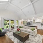 The custom-designed kitchen anchors the home with built-in Miele appliances, a brand new centre island with breakfast bar, and striking slab backsplash and countertops. The open-concept family room, crowned by coffered ceilings, walks out seamlessly to the garden — an ideal setting for both intimate evenings and larger gatherings.
