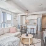 Bright and spacious 2 bed + 2 bath corner unit. Very functional and open concept layout with tons of natural lighting and large wrap-around 250 sqft balcony. Upgrades included. Solar walkway lights installed in the balcony area, modern kitchen with stainless steel appliances, quartz countertops, custom motorized blinds, extra potlights, standing glass shower and rainfall shower head. Conveniently located with the TTC at your door, aquatic centre, grocery stores, Eaton Centre, Ryerson University and many more!