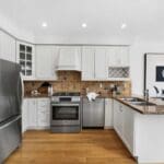 Upstairs, two spacious bedrooms are bright and beautifully proportioned, each with large windows and excellent closet space. They share a generously sized five-piece bath, and a full laundry area on the same level adds an effortless layer of convenience to everyday life.