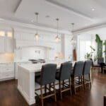 Ascend to the airy second floor, illuminated by a skylight and adorned with high ceilings, hardwood floors, and a convenient upper-level laundry. Retreat to the primary suite, offering serene garden views, a dressing room, separate walk-in closet, and a luxurious 7-piece ensuite spa bath. Three additional bedrooms, each with its own ensuite and walk-in closet, provide ample space for family and guests.