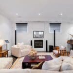 The lower level is a haven for entertainment, boasting radiant heated floors, a built-in wet bar, and a versatile recreation room. A guest or nanny suite, along with a mudroom, adds practicality and convenience to this exceptional residence.