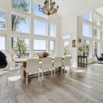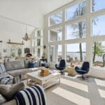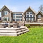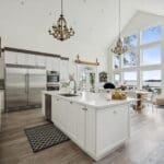 Spanning over 3,800 sq. ft., the home is clad in cement siding and spray-foam insulated for energy efficiency throughout the seasons. Cathedral ceilings and floor-to-ceiling windows frame breathtaking lake views, while a cozy fireplace warms the main living area. The open-concept kitchen and dining space is made for gathering.