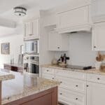 Designed for culinary enthusiasts, the gourmet kitchen is a masterpiece, featuring under-cabinet lighting, full-size appliances—including a built-in cooktop, wall oven, and warming drawer—granite countertops, and ample cabinetry with a dedicated pantry. A thoughtfully designed pass-through to the dining area ensures effortless entertaining.