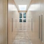 At the core of the home lies an exquisitely designed, eat-in chef’s kitchen. A bold Caesarstone waterfall island with integrated fridge drawers and a breakfast bar sets the stage for both casual dining and sophisticated entertaining. Culinary aficionados will delight in the top-tier Wolf 6-burner gas range, complete with grill and griddle, pot filler, dual wall ovens, and paneled Sub-Zero refrigerator and freezer columns. The sleek Miele dishwasher blends seamlessly into custom cabinetry, enhanced by soft-close drawers, valance lighting, and under-cabinet illumination. A built-in pantry with Caesarstone counters, beverage fridge, and dedicated ice maker adds functionality with flair, while a separate walk-in pantry concealed behind a modern glass slider offers elegant, organized storage.