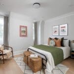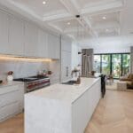 At the heart of the home, the exquisite kitchen is a dream for home chefs and hosts alike — outfitted with top-of-the-line appliances, bespoke cabinetry, and an expansive breakfast bar. Rich white oak herringbone hardwood flooring adds character and warmth throughout the main level. Upstairs, the second floor hosts a luxurious primary suite situated at the back of the house, featuring a spa-like ensuite and a custom walk-through closet. Another bedroom sits at the front with its own ensuite and custom closets. The third level is brilliantly designed with two additional bedrooms (each with ensuites) and a secondary laundry room.