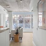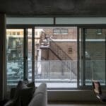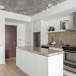 Rarely available one-bedroom suite at Philippe Starck-designed 75 Portland in the vibrant heart of King West Village. This impeccably maintained 582 sq. ft. suite features soaring 9′ exposed concrete ceilings and a spacious 115 sq. ft. balcony with BBQ gasoline. The open-concept design boasts floor-to-ceiling windows, excellent closet space, brand new wide-plank engineered floors, and a sleek centre island, creating a perfect blend of style and function.