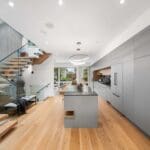 From the moment you arrive, 83 Virginia Avenue stands apart with its striking wood façade and carefully considered design. Completed in 2022, this home blends light with natural materials, creating a sense of balance and an atmosphere that is both sophisticated and comfortable. The main floor flows effortlessly between living, dining, and kitchen areas framed by floor-to-ceiling windows and rich hardwood flooring. A gas fireplace adds warmth, while the custom kitchen combines quartz counters, integrated dining, and built-in cabinetry designed for everyday living. At the rear of the home, the family room features warm custom-built-ins and opens through a glass door to a lovely private yard with a beautiful garden shed.
