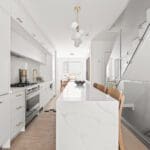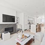The main living spaces feature wide-plank hardwood floors that seamlessly flow into a state-of-the-art custom kitchen, complete with quartz countertops, high-end stainless steel appliances, and a stylish gas fireplace. This beautifully appointed space is ideal for both everyday living and entertaining.