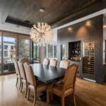 At the core of the home lies an exquisitely designed, eat-in chef’s kitchen. A bold Caesarstone waterfall island with integrated fridge drawers and a breakfast bar sets the stage for both casual dining and sophisticated entertaining. Culinary aficionados will delight in the top-tier Wolf 6-burner gas range, complete with grill and griddle, pot filler, dual wall ovens, and paneled Sub-Zero refrigerator and freezer columns. The sleek Miele dishwasher blends seamlessly into custom cabinetry, enhanced by soft-close drawers, valance lighting, and under-cabinet illumination. A built-in pantry with Caesarstone counters, beverage fridge, and dedicated ice maker adds functionality with flair, while a separate walk-in pantry concealed behind a modern glass slider offers elegant, organized storage.